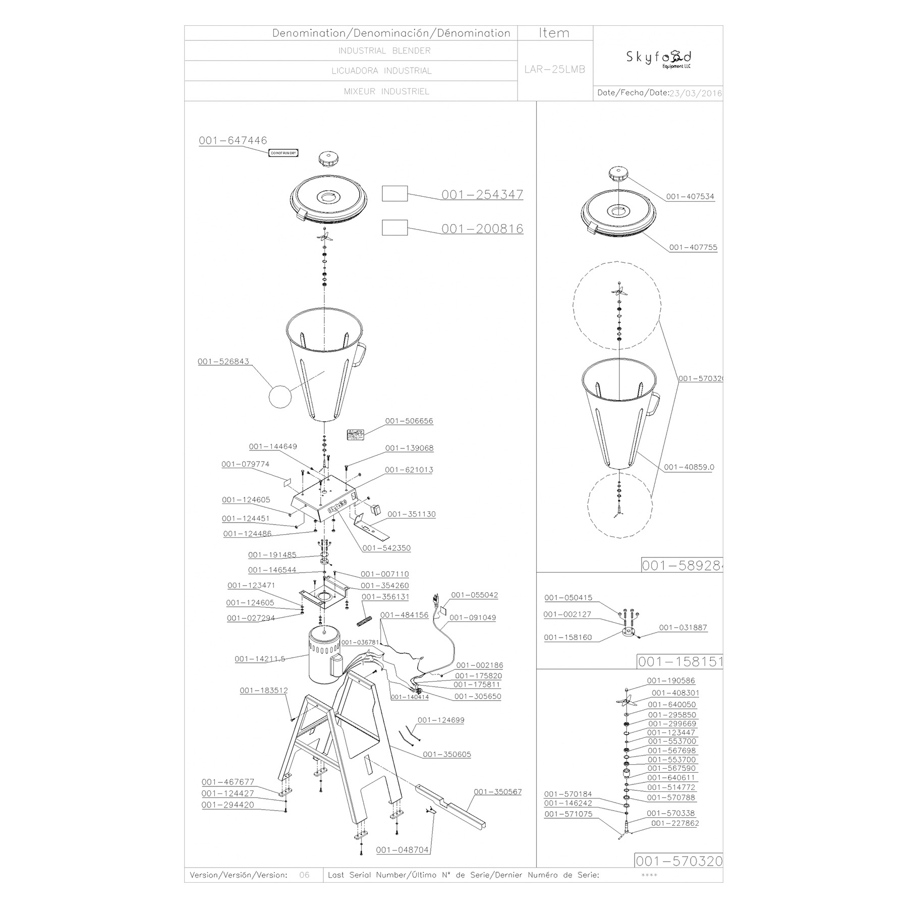 Skyfood LAR-25LMBE 6-1/2 Gallon Stainless Steel Seamless Container Floor Model Food Blender - 3,500 RPM, 1-1/2 HP